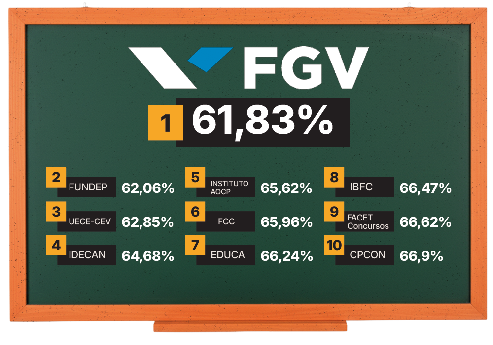 O ranking de dificuldade das bancas organizadoras em 2025 revela uma mudança significativa em relação ao ano anterior. A Fundação Getulio Vargas (FGV) assume o topo da lista como a banca mais desafiadora do país.
