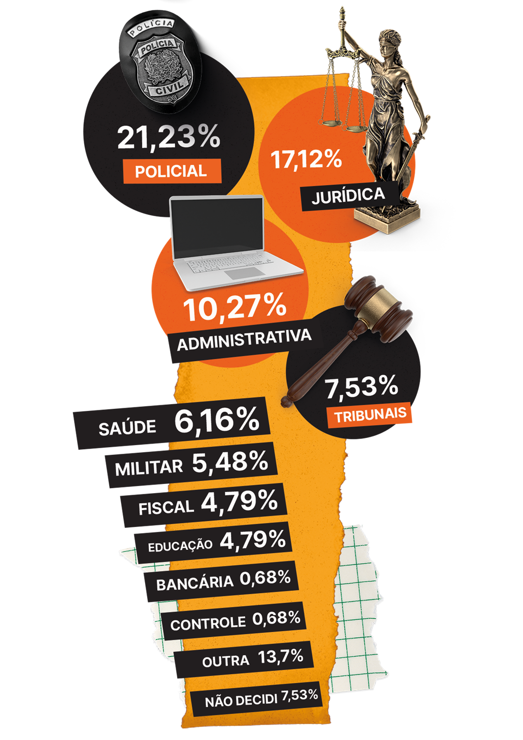 A área Policial também aparece como a mais procurada dentro do grupo de pessoas trans e não binárias. Ela foi a mais citada como a "carreira dos sonhos".