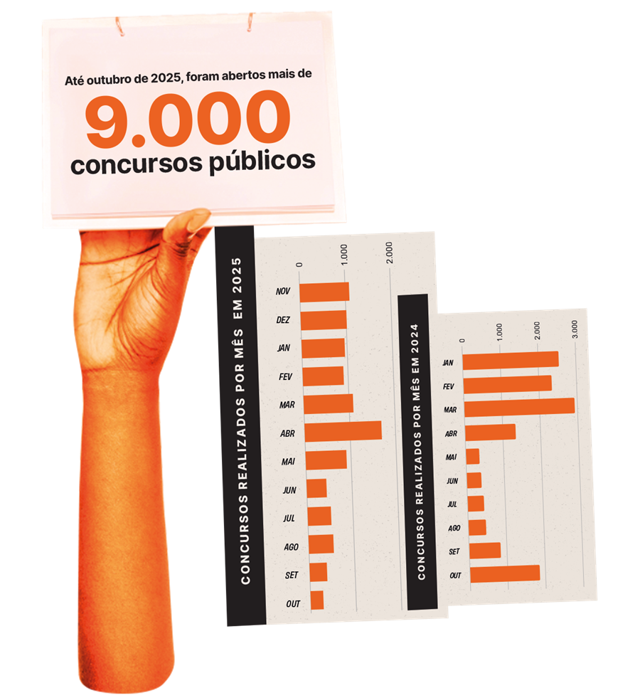 Até outubro de 2025, foram abertos 9.581 concursos públicos no Brasil, o que representou um aumento de 57% em relação ao ano passado.