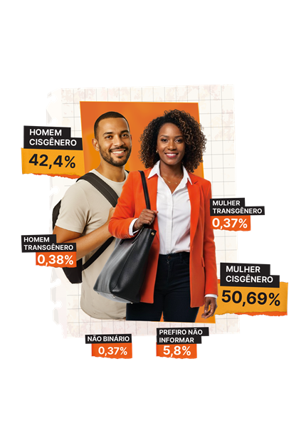 O perfil étnico aponta mudanças significativas este ano. A participação de pessoas pardas cresceu de forma expressiva, chegando a 40,6% e aproximando-se de sua representatividade na população brasileira.