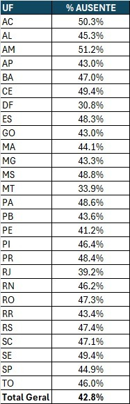 Nesta edição, o ministério informou que a abstenção percentual foi maior nos seguintes estados: