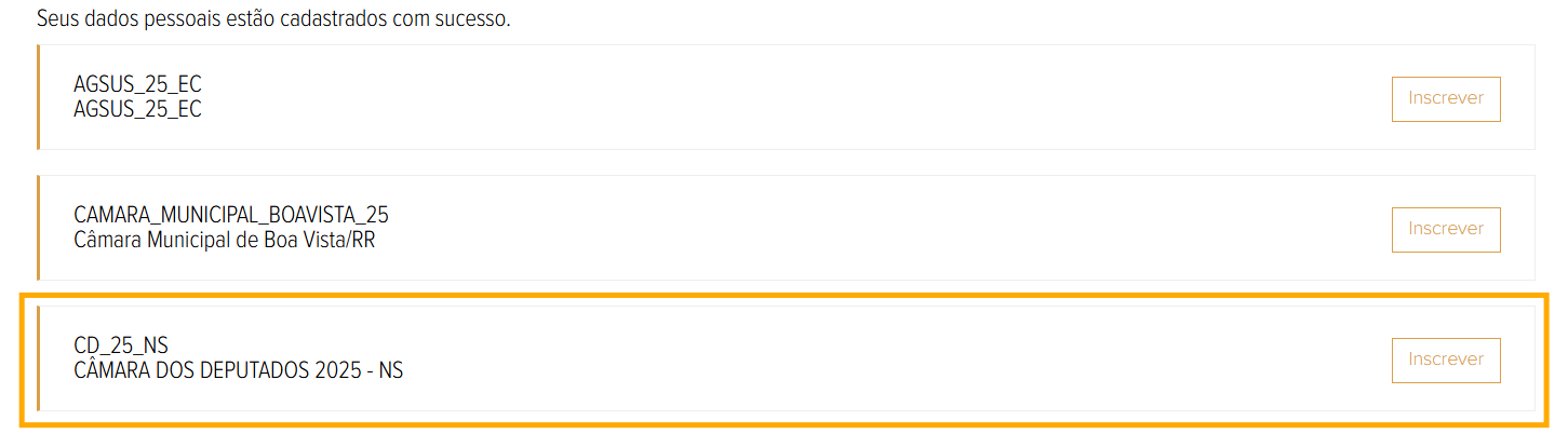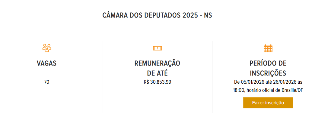 Por fim, o Cebraspe disponibilizará a página “Inscrição para eventos”, que reúne todos os concursos com inscrições abertas no momento, incluindo o da Câmara dos Deputados.