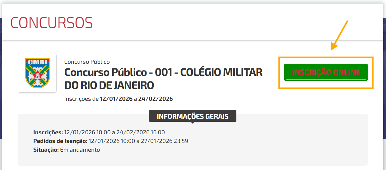 - na página do concurso, clicar em "Inscrição Online" para realizar o cadastro.