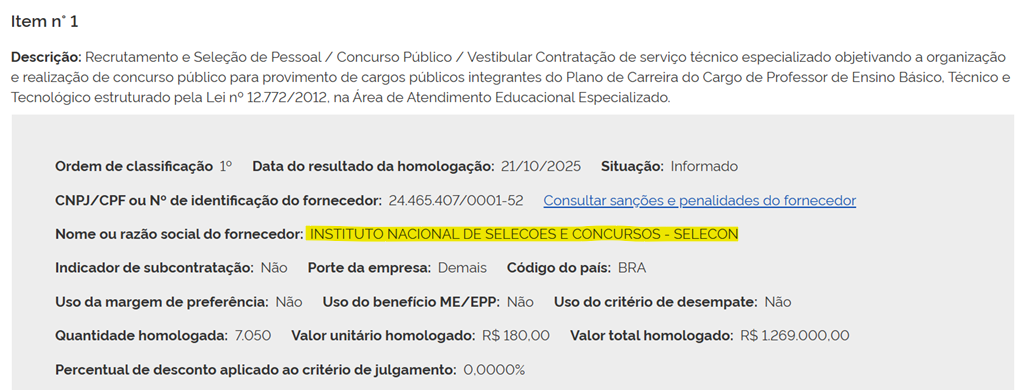 O Instituto AOCP e o Instituto Brasileiro de Formação e Capacitação (IBFC) também participaram do processo. Mas o Selecon foi o escolhido para ficar à frente do próximo concurso para o magistério.
