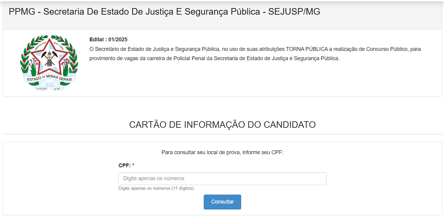 Banca divulga locais das provas do concurso Penal MG com mais de 1,1 mil vgas